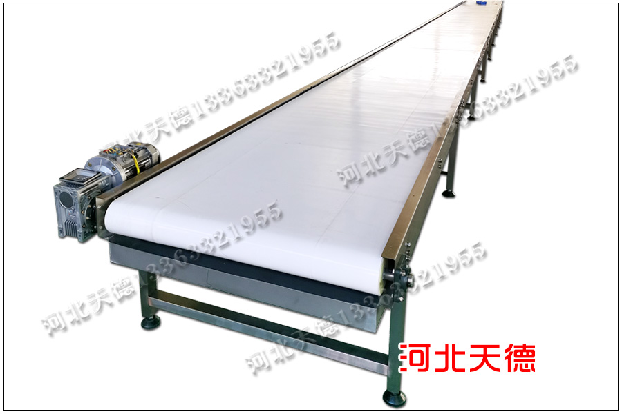 整臺輸送機機架采用不銹鋼304板加工而成,輸送帶采用PVC橡膠材質加工。