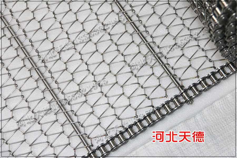 清洗輸送線上的載重非常的輕,客戶特意要求使用小滾珠金屬鏈條網帶,小滾珠鏈條節距為19.05毫米,采用鏈桿直徑為5毫米的鋼桿組裝。