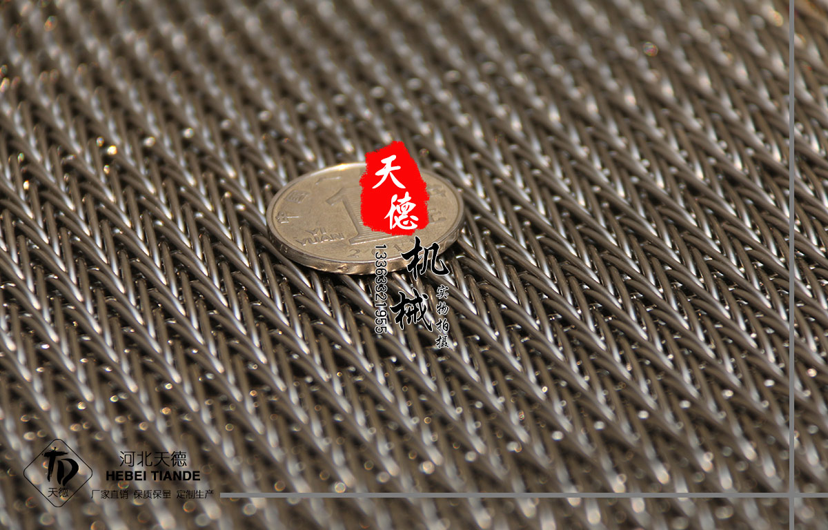 人字形網帶由左右交替的網條通過四根直串條聯結而成,準確的編織技術使網帶既具有密度、高網孔、細運行靈活的特點,它對材料和編織技術要求高。