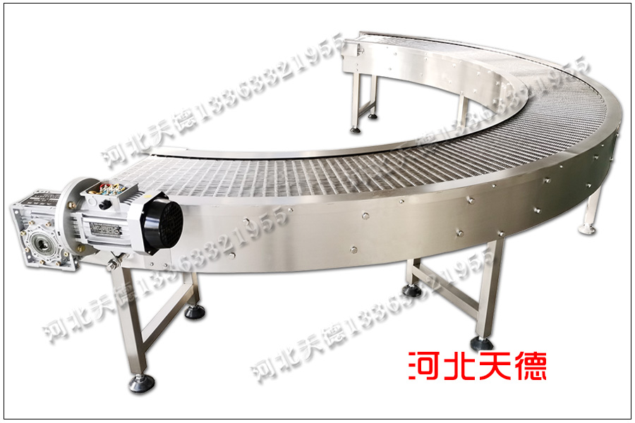 這里要介紹的這款是四川的客戶定制的轉(zhuǎn)彎網(wǎng)帶輸送機(jī),一般轉(zhuǎn)彎?rùn)C(jī)采用鏈條輸送帶和鏈板輸送帶作為輸送件的比較,