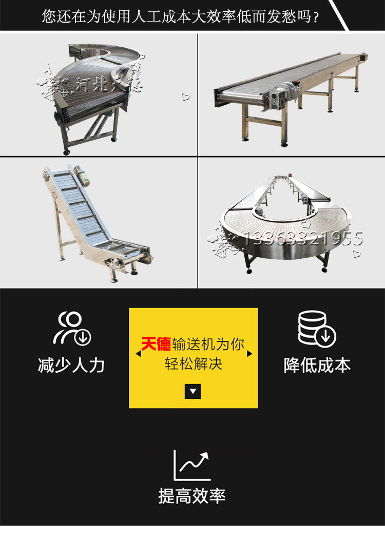 輸送機(jī)應(yīng)用行業(yè):食品、冶金、電力、煤炭、化工、建材、碼頭、糧食等。輸送機(jī)結(jié)構(gòu)形式: 水平直線輸送、提升爬坡輸送、轉(zhuǎn)彎輸送等多種形式,輸送帶上還可增設(shè)提升擋板、側(cè)擋板等附件,能滿足各種工藝要求。